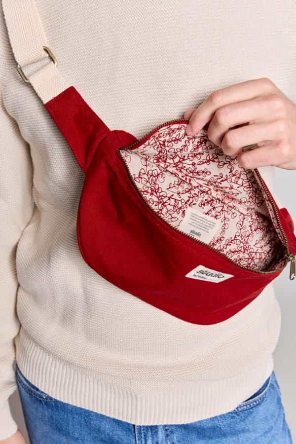 En coton 100% bio GOTS épais et solide, il vous permettra de transporter tout le contenu de votre sac à main de manière confortable et pratique. Grâce à son anse réglable en joli coloris écru, cette banane est portable aussi bien sur un manteau épais en hiver que sur un t-shirt léger l’été.
