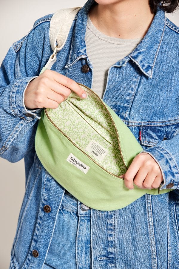 En coton 100% bio GOTS épais et solide, il vous permettra de transporter tout le contenu de votre sac à main de manière confortable et pratique. Grâce à son anse réglable en joli coloris écru, cette banane est portable aussi bien sur un manteau épais en hiver que sur un t-shirt léger l’été.