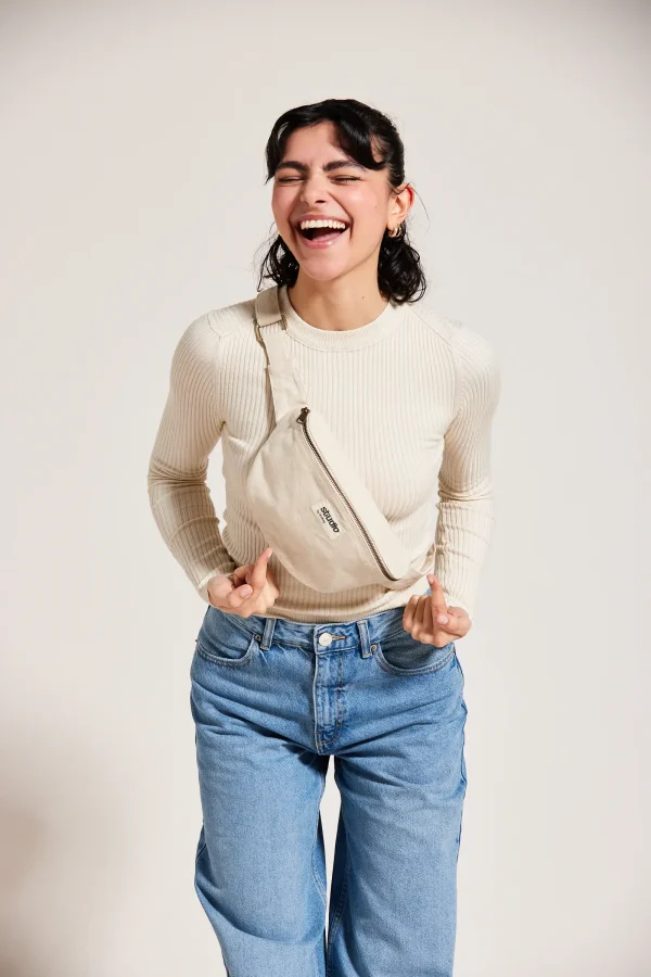 Grâce à son anse réglable de la même couleur que le sac, cette banane est portable aussi bien sur un manteau épais en hiver que sur un t-shirt léger l’été.
