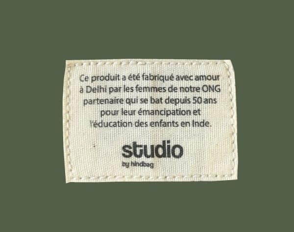 Chaque produit présente une étiquette intérieure cousue, explicative du projet social.