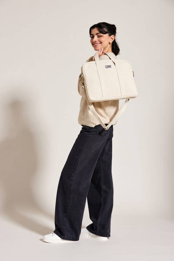 En 100% bio GOTS , il dispose également d’une doublure contenant un rembourrage en mousse très épais qui amortit les chocs, l’ordinateur portable (max 15 pouces / l 28 x L 35 cm) est bien protégé. Son compartiment intérieur permet d’y glisser aussi ses dossiers et cahiers. Son look moderne et élégant en fait le meilleur allié de ceux qui ne peuvent pas se déplacer sans leur précieux ordinateur !