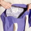 Chaque produit présente une étiquette intérieure cousue, explicative du projet social.