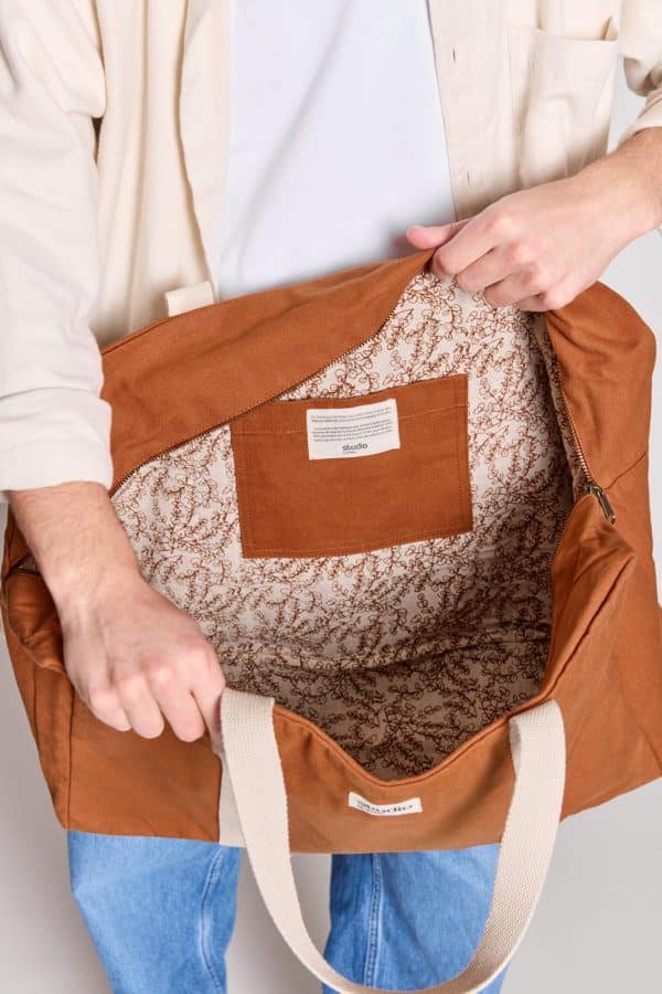 En coton 100% bio GOTS épais et solide, il dispose d'une grande fermeture éclair qui vous permettra de transporter en toute sécurité vos précieuses affaires. Sa doublure aux motifs imprimés lui apporte originalité et élégance. Petit plus : sa poche intérieure plaquée afin d'y glisser ses essentiels à avoir à portée de main.