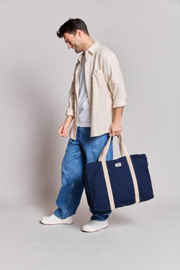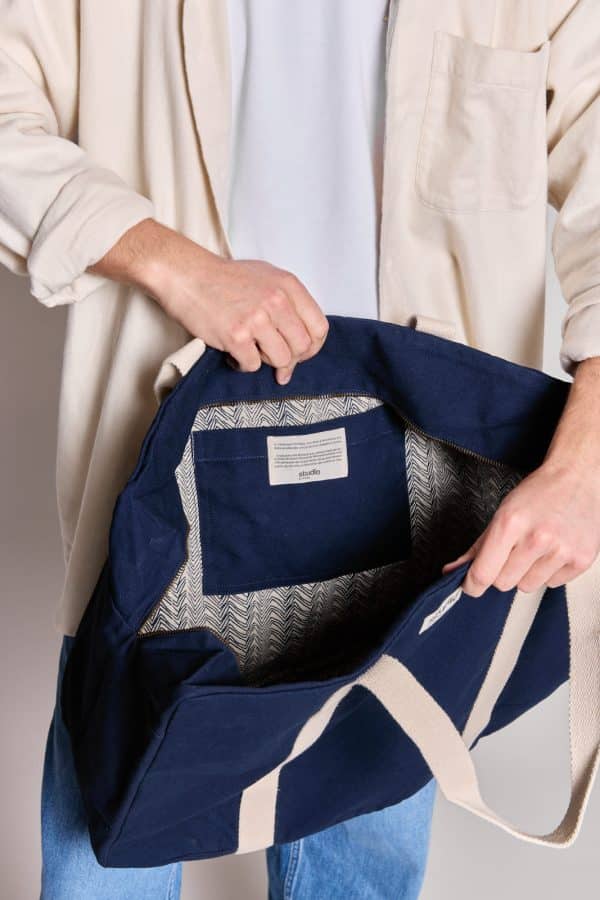 En coton 100% bio GOTS épais et solide, il dispose d'une grande fermeture éclair qui vous permettra de transporter en toute sécurité vos précieuses affaires. Sa doublure aux motifs imprimés lui apporte originalité et élégance. Petit plus : sa poche intérieure plaquée afin d'y glisser ses essentiels à avoir à portée de main.
