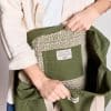 En coton 100% bio GOTS épais et solide, il dispose d'une grande fermeture éclair qui vous permettra de transporter en toute sécurité vos précieuses affaires. Sa doublure aux motifs imprimés lui apporte originalité et élégance. Petit plus : sa poche intérieure plaquée afin d'y glisser ses essentiels à avoir à portée de main.