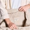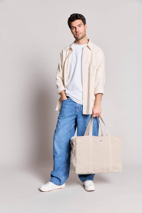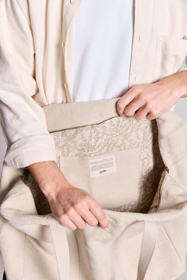 En coton 100% bio GOTS épais et solide, il dispose d'une grande fermeture éclair qui vous permettra de transporter en toute sécurité vos précieuses affaires. Sa doublure aux motifs imprimés lui apporte originalité et élégance. Petit plus : sa poche intérieure plaquée afin d'y glisser ses essentiels à avoir à portée de main.