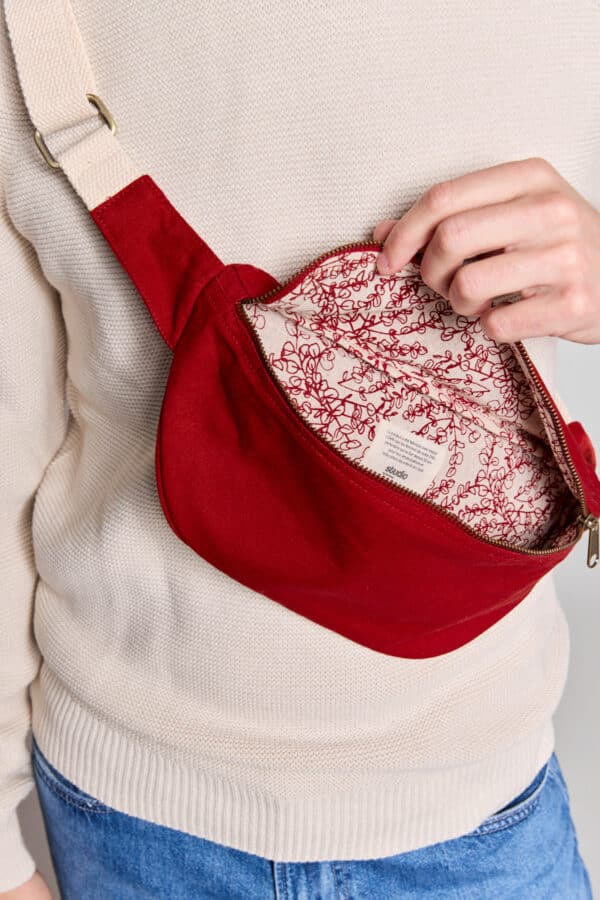 En coton 100% bio GOTS épais et solide, il vous permettra de transporter tout le contenu de votre sac à main de manière confortable et pratique. Grâce à son anse réglable en joli coloris écru, cette banane est portable aussi bien sur un manteau épais en hiver que sur un t-shirt léger l’été.