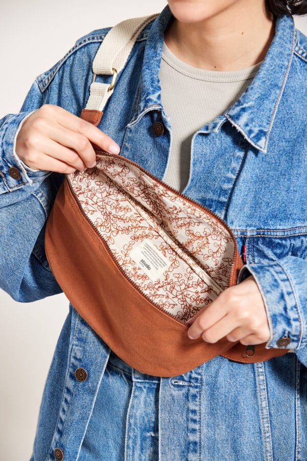 En coton 100% bio GOTS épais et solide, il vous permettra de transporter tout le contenu de votre sac à main de manière confortable et pratique. Grâce à son anse réglable en joli coloris écru, cette banane est portable aussi bien sur un manteau épais en hiver que sur un t-shirt léger l’été.