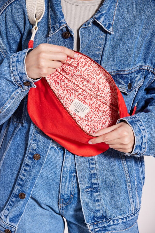 En coton 100% bio GOTS épais et solide, il vous permettra de transporter tout le contenu de votre sac à main de manière confortable et pratique. Grâce à son anse réglable en joli coloris écru, cette banane est portable aussi bien sur un manteau épais en hiver que sur un t-shirt léger l’été.