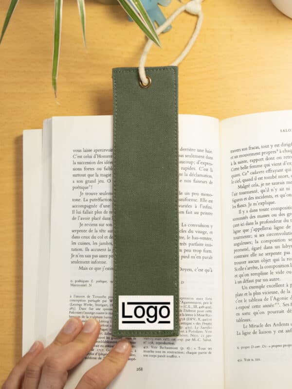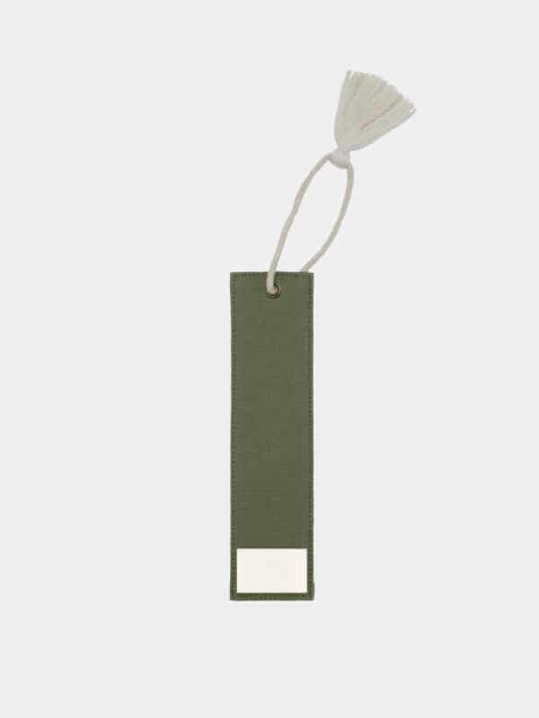 Marque-page en coton biologique certifié GOTS, conçu avec un renfort pour assurer une bonne rigidité et un maintien parfait entre les pages. Son élégante ficelle ornée d’un pompon dépasse délicatement du livre, ajoutant une touche esthétique.