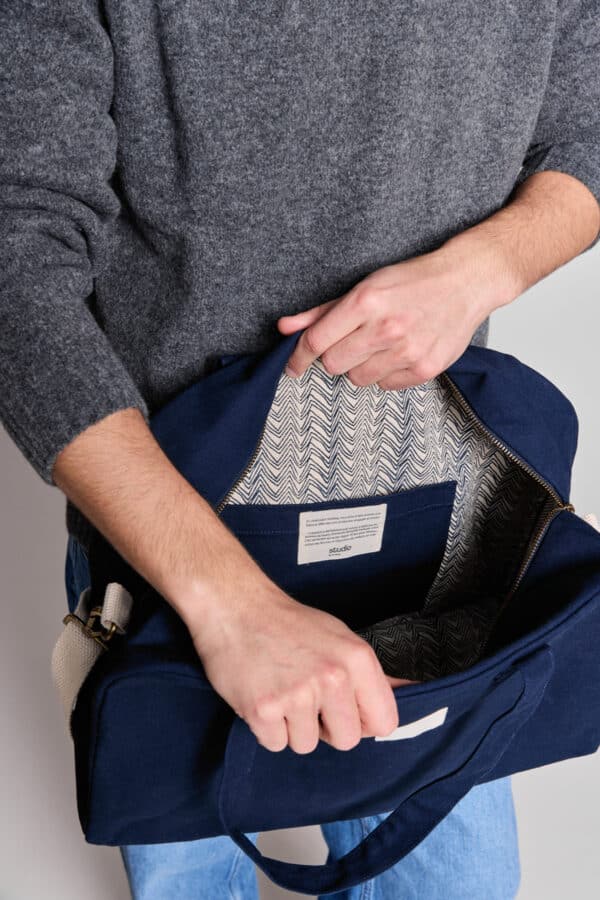 En coton 100% bio GOTS épais et solide, son look vintage est un hommage au célèbre sac bowling. Il permettra aux plus sportifs d'emporter tout le nécessaire pour leur séance et à tous les autres de partir en week end avec style. Il se porte aussi bien en bandoulière qu'à la main ou au bras pour une silhouette plus élégante. Sa poche intérieure plaquée, vous permettra de ranger et de retrouver vos essentiels rapidement.