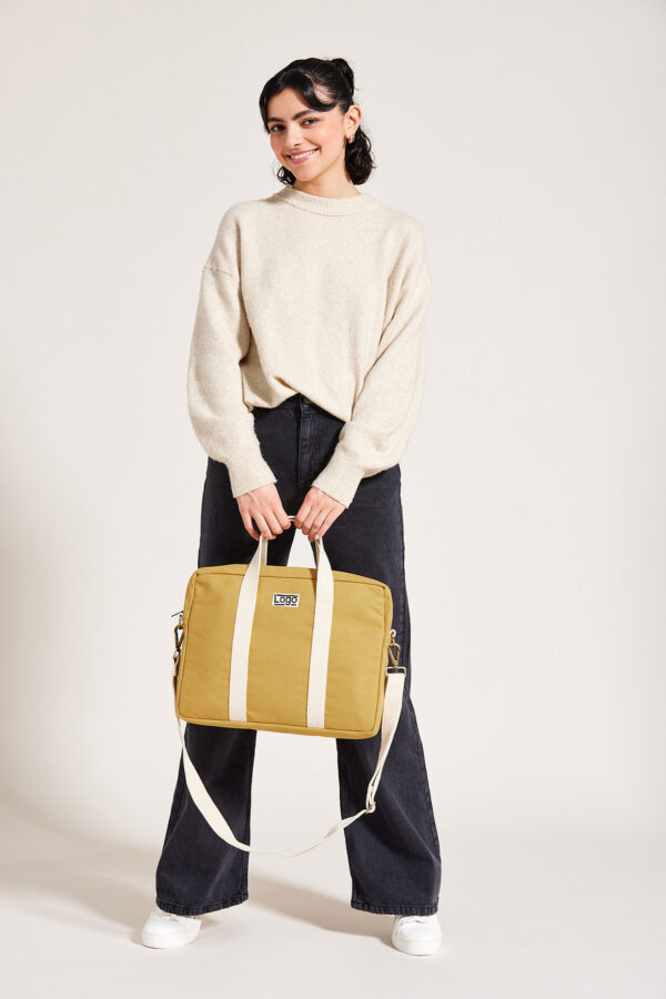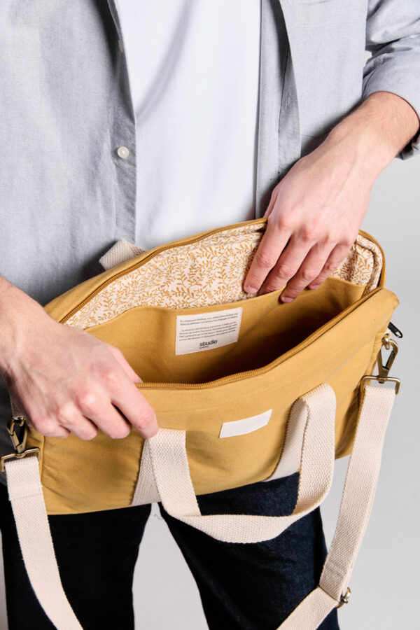 En 100% bio GOTS , il dispose également d’une doublure contenant un rembourrage en mousse très épais qui amortit les chocs, l’ordinateur portable (max 15 pouces / l 28 x L 35 cm) est bien protégé. Son compartiment intérieur permet d’y glisser aussi ses dossiers et cahiers. Son look moderne et élégant en fait le meilleur allié de ceux qui ne peuvent pas se déplacer sans leur précieux ordinateur !