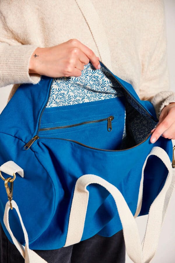 Sac polochon Sam avec bandoulière – Bleu Roi