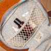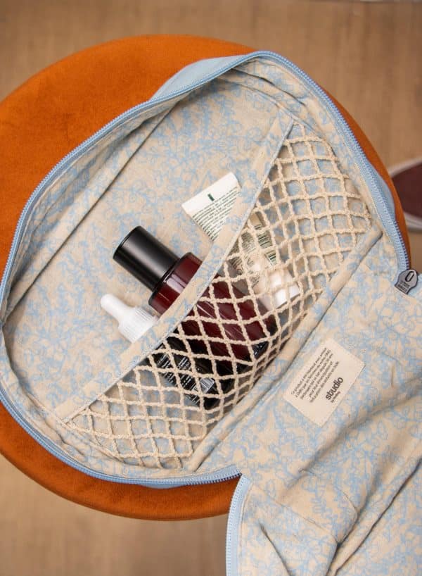 En coton 100% bio GOTS , il est idéal pour emporter tous ses produits favoris en vacances. En plus d’être élégant et coloré, il est pratique. En effet, son anse extérieure permet de le transporter facilement et son filet intérieur maintient tous les petits essentiels. Grâce à sa jolie doublure intérieure en coton, vos affaires de voyage seront bien protégées de vos produits de beauté.