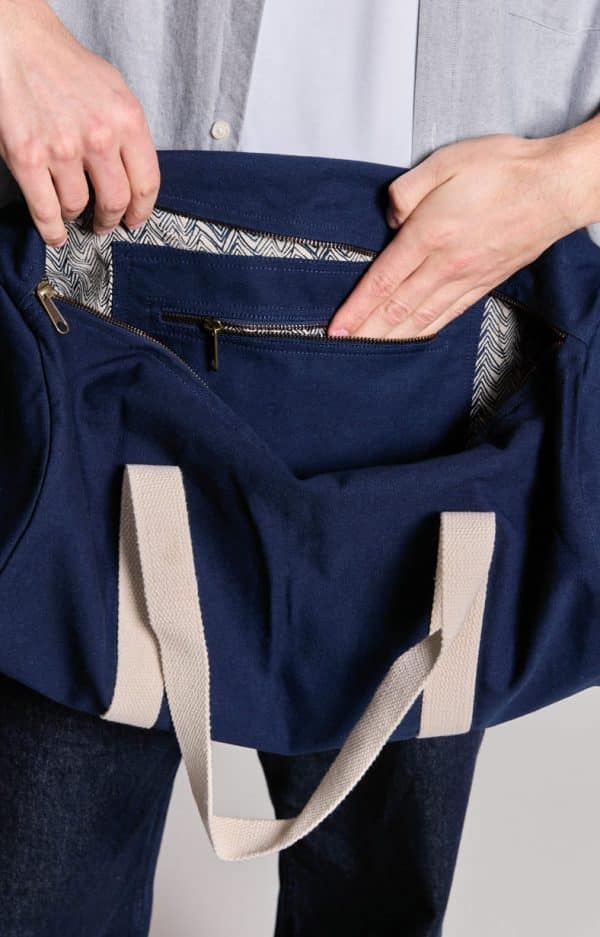 Notre grand sac polochon Sam 100% coton bio GOTS est un indispensable pour partir en escapade ou encore pour aller à la salle de sport. Dans sa poche intérieure avec fermeture, vous pourrez ranger vos petits essentiels à avoir à portée de main.